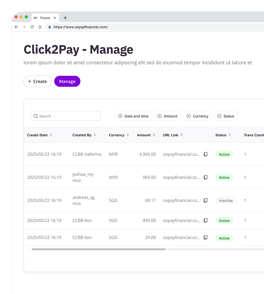 Stay on top of your payments by managing every link you create. View real-time transaction records for full visibility and control.