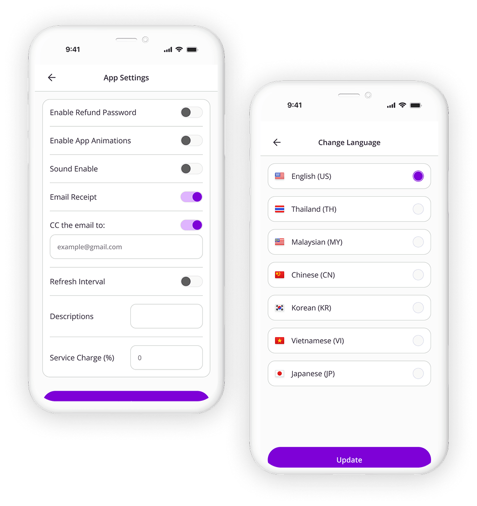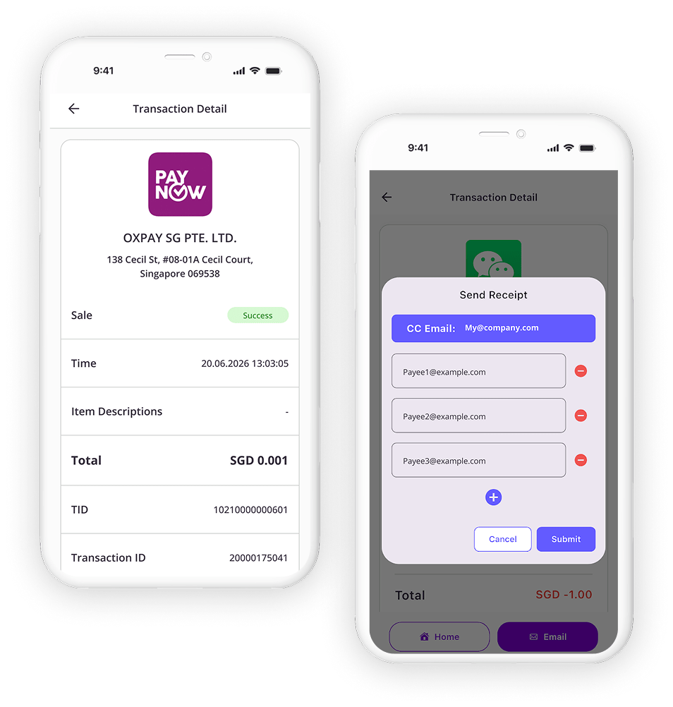 Print receipts via Oxpay terminals or go green with digital receipts sent by email. Automatically CC your company inbox for seamless bookkeeping.